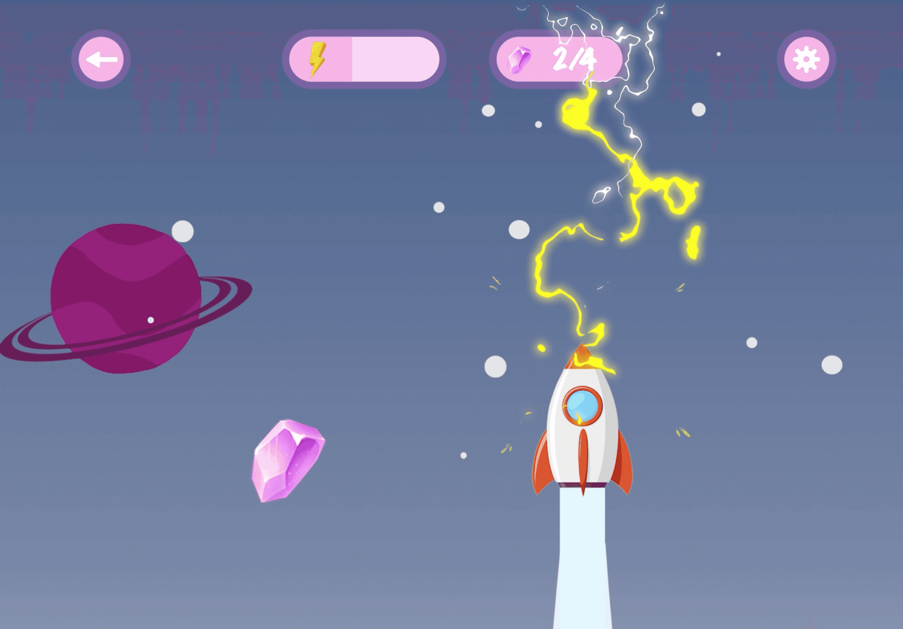 As a team, we designed diverse and engaging game environments to make therapy immersive, motivating, and fun. In one level, players use a press controller to help Rickey jump over rocks in a cave, reinforcing hand strength and coordination. In another, they steer a rocket through space using lateral movements to collect gems, supporting side-to-side hand motion. These scenarios were crafted to keep gameplay fresh and interactive, avoiding the repetition often found in traditional therapy.